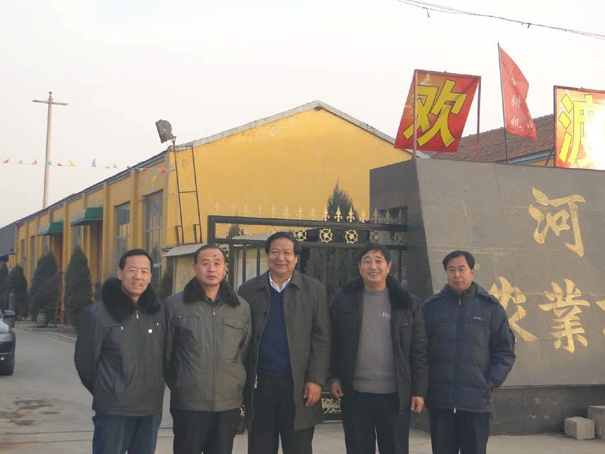 河南豪豐劉董事長(左三)、德州華北農機張總(左一)、定州開元白總(左二)到公司參觀、探討、調研
