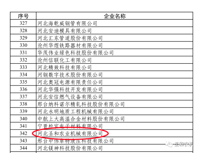 日前,國(guó)家工業(yè)和信息化部公布了第三批國(guó)家專精特新“小巨人”企業(yè)名單并完成了社會(huì)公示,河北圣和農(nóng)業(yè)機(jī)械有限公司榜上有名,標(biāo)志著圣和在農(nóng)機(jī)具前沿技術(shù)先進(jìn)性、業(yè)務(wù)拓寬規(guī)模性以及發(fā)展質(zhì)量示范性等多方面,獲得了國(guó)家工業(yè)和信息化部的認(rèn)可與肯定,品牌知名度以及核心競(jìng)爭(zhēng)力得到了進(jìn)一步提升。