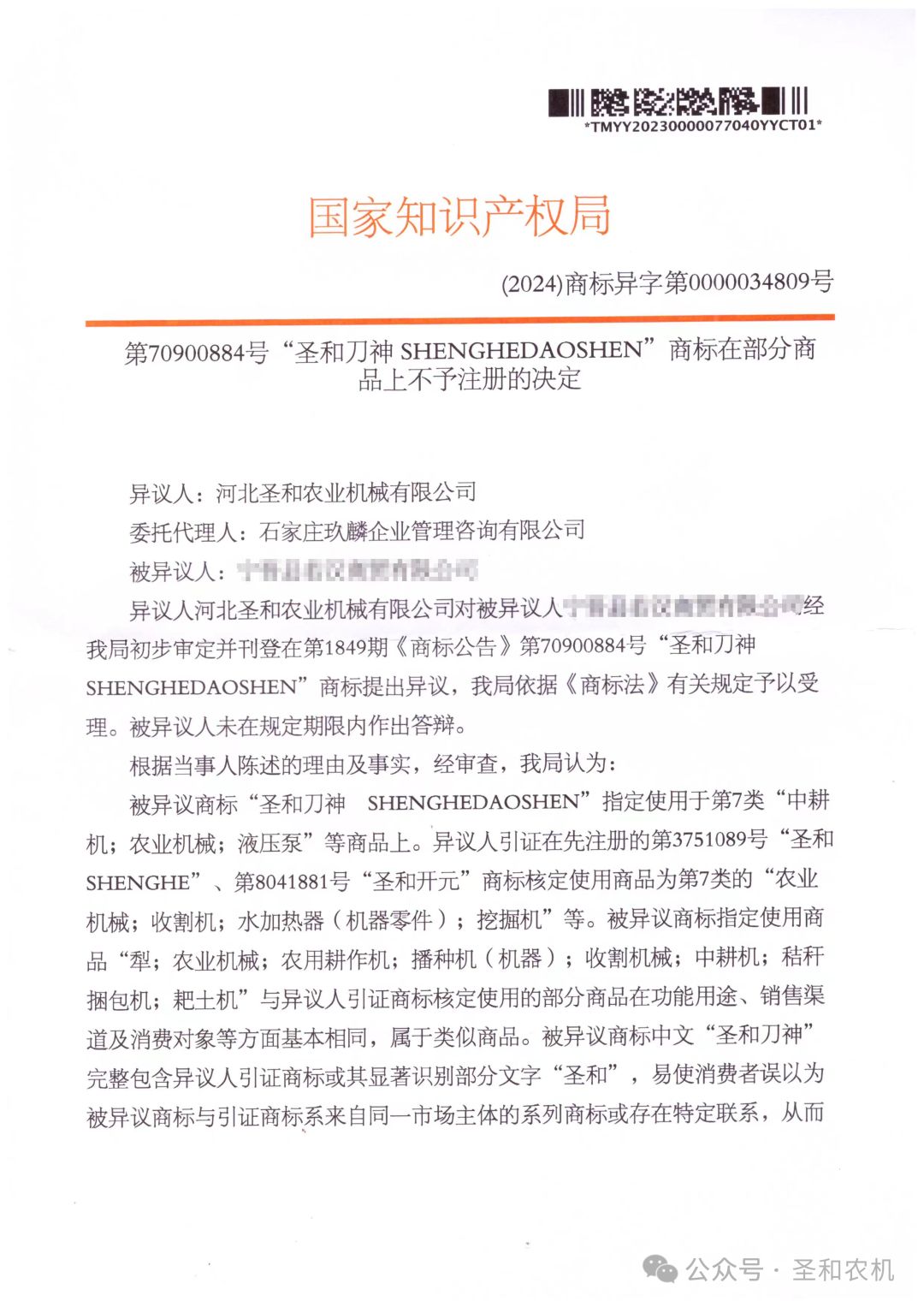 近年來,國家知識產(chǎn)權(quán)局從源頭治理,對商標(biāo)惡意搶注行為實施部門聯(lián)動、精準(zhǔn)打擊,依法維護(hù)了市場主體的公平競爭,為營造良好的知識產(chǎn)權(quán)法治環(huán)境、市場環(huán)境和社會環(huán)境提供了保障。近日,國家知識產(chǎn)權(quán)局作出了不予核準(zhǔn)“圣和刀神”商標(biāo)注冊的決定【(2024)商標(biāo)異字第0000034809號】,就是打擊商標(biāo)惡意搶注行為的一次意志體現(xiàn)。