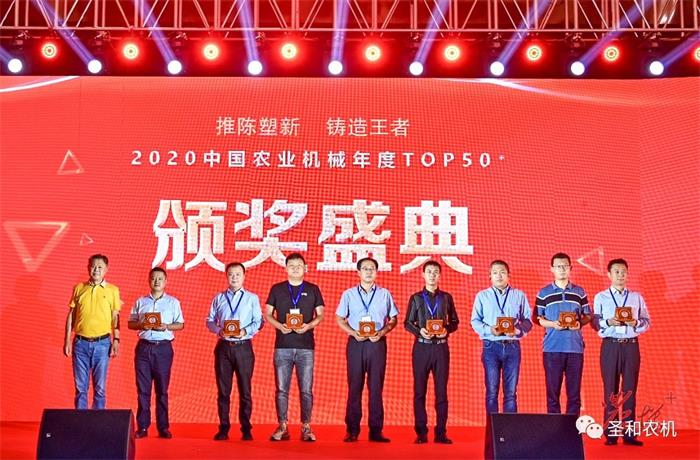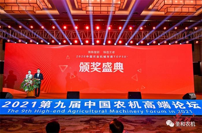 河北圣和農(nóng)業(yè)機(jī)械有限公司榮獲2020中國(guó)農(nóng)業(yè)機(jī)械年度TOP50+最具影響力自主品牌“金禾獎(jiǎng)”,河北圣和農(nóng)業(yè)機(jī)械有限公司營(yíng)銷管理中心總經(jīng)理郭廣彥上臺(tái)領(lǐng)獎(jiǎng)。