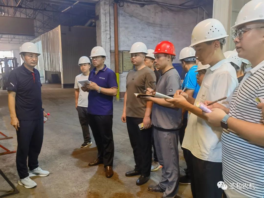 2022年7月31日,圣和公司董事長王新芳在晨會(huì)后帶領(lǐng)營銷中心員工到一線生產(chǎn)現(xiàn)場(chǎng)學(xué)習(xí)產(chǎn)品生產(chǎn)工藝流程,